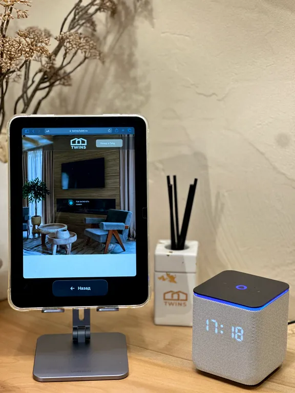 - Домашний кинотеатр и колонка Алиса, планшет с навигацией по дому