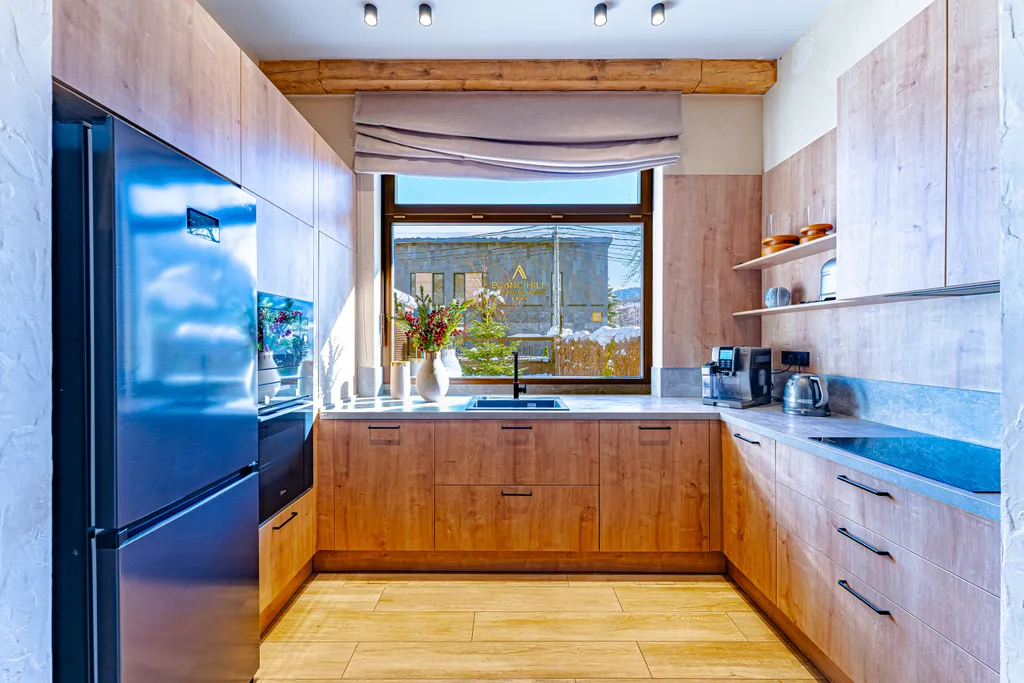 - Кухня с большим окном во двор и полным набором мебели и высококачественной техники