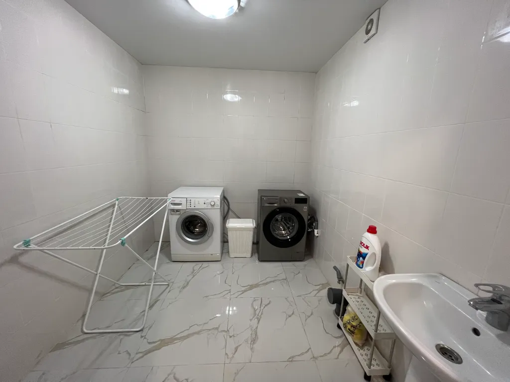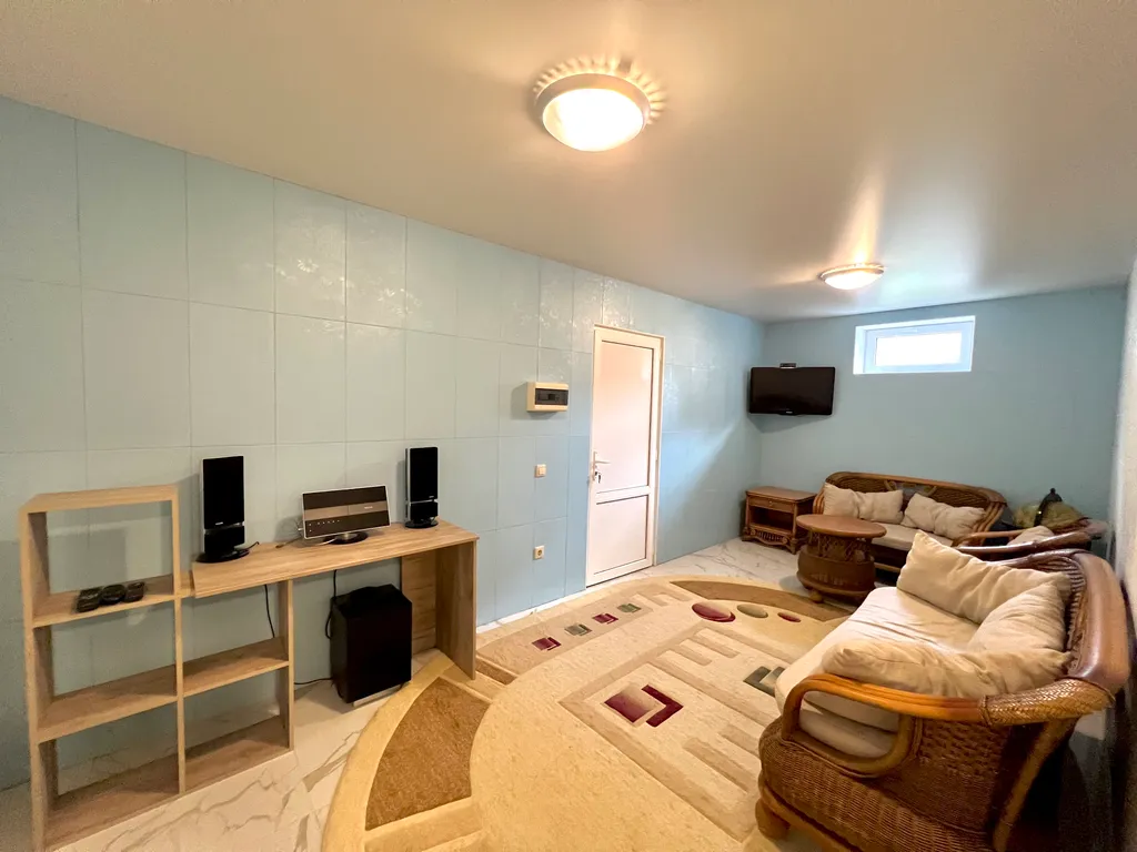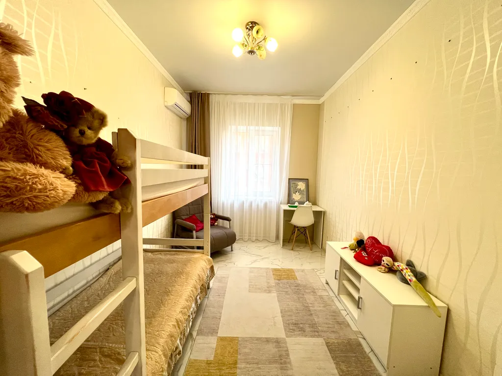 На 1 этаже комнаты кухня-гостиная, детская комната с двухъярусной кроватью, сан, узел с большой ванной.