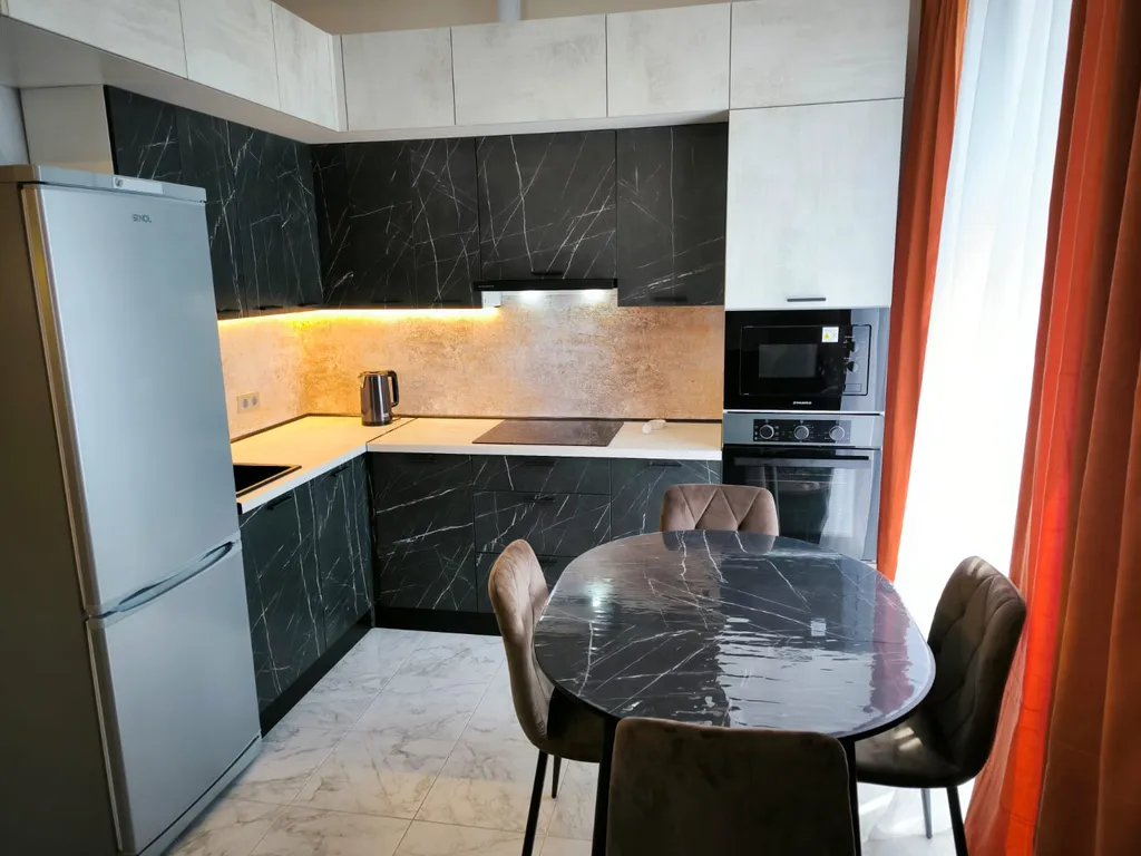 Квартира новая, сделан дизайнерский ремонт. В квартире спальная кровать 160х200, раскладной диван 140х200, что позволяет с комфортом разместиться 2-м взрослым с 2-мя детьми. Теплые полы, кондиционер, кухня с духовкой, индукционной плитой и СВЧ-печью. Полный набор посуды на 4 персоны. Стиральная машина, банные полотенца, фен, утюг, гладильная доска, сушилка. Смарт-тв.