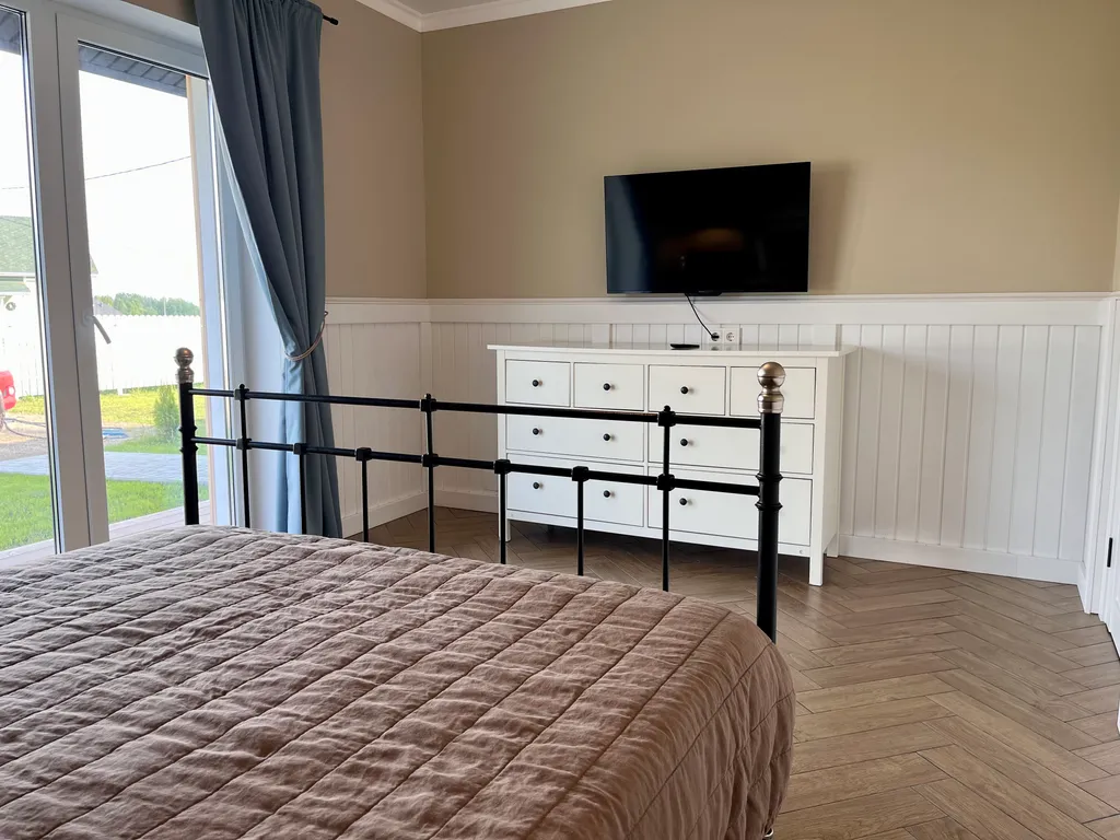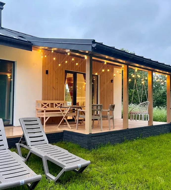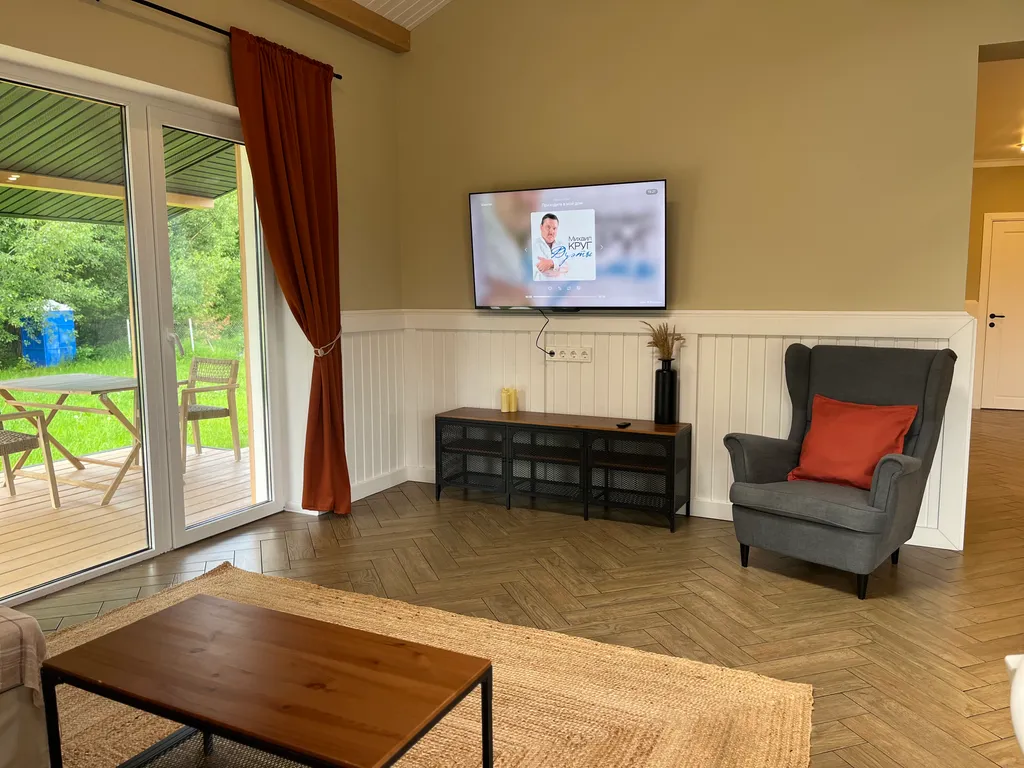 Дом подходит для семьи или компании до 6 человек (с учётом раскладного дивана в гостиной).