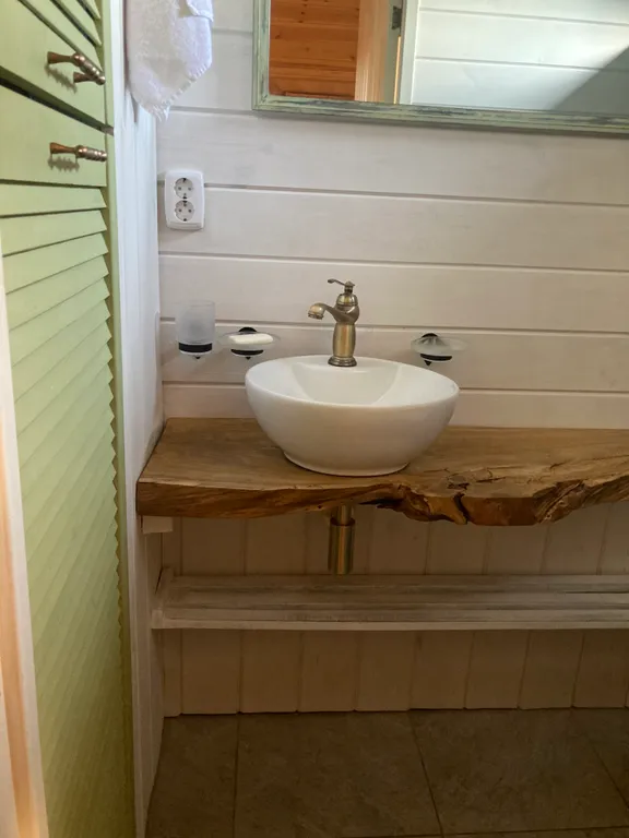 У нас вы сможете попариться в настоящей бане на дровах, которая расположена прямо в доме. А для любителей острых ощущений на улице имеется ледяная купель, в которую можно окунуться после парной. Эта контрастная процедура способствует омоложению, улучшению кровообращения и укреплению иммунитета. А ещё у нас установлен банный чан для релакс-процедур под открытым небом.