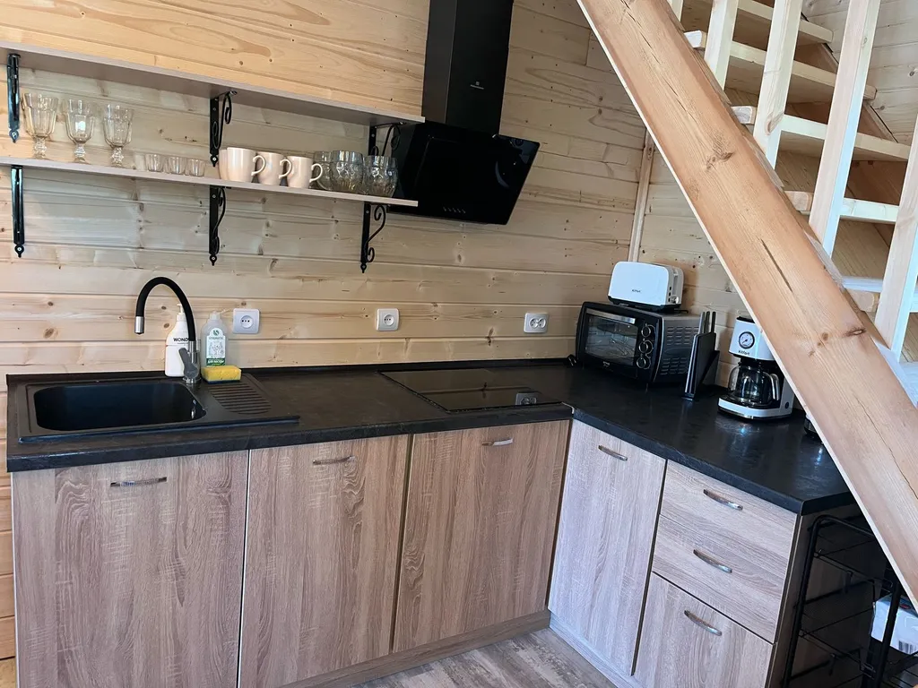 Кухонный уголок оборудован всем необходимым, включая посудомоечную машину.