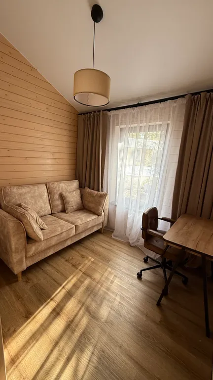 Дом находится в совсем новом поселке на окраине с лесом. По этой причине забора и ограждения нет, это не помешает вам насладиться природой и уединением. А также можно прогуляться по лесу и насладиться пением птиц.