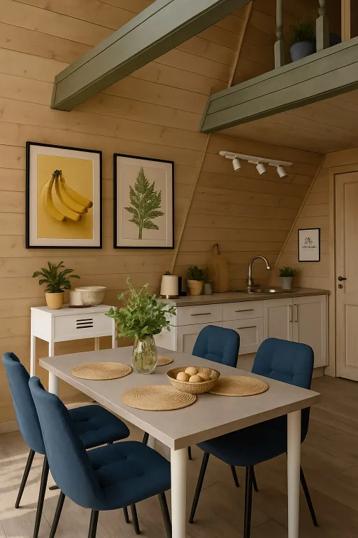 - Просто отдохнуть от городской суеты, вы сможете в нашем новом домике, он рассчитан на 4 гостей, в нем два этажа, две спальни и кухня- гостиная. Но за отдельную плату, мы сможем принять и 5-го гостя, у него будет односпальный диван.