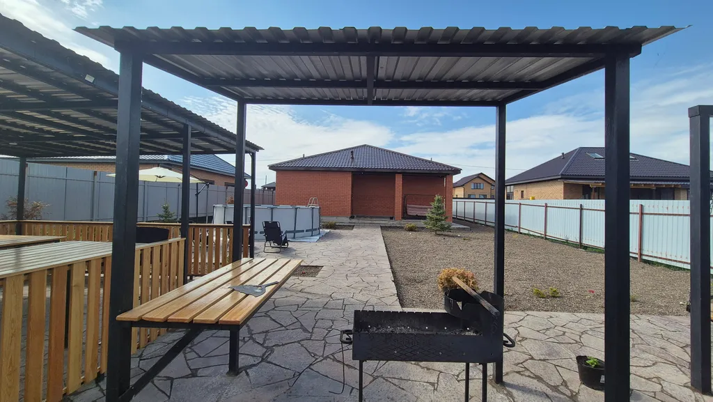 На территории участка большая беседка.