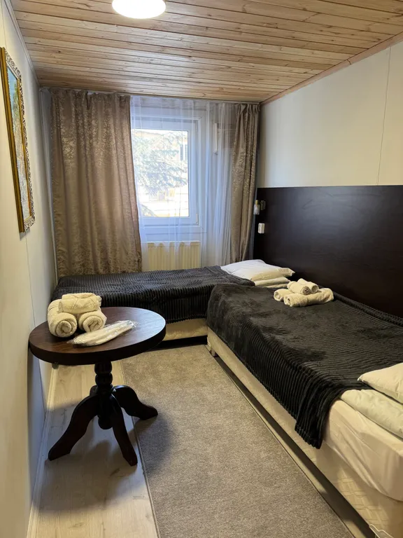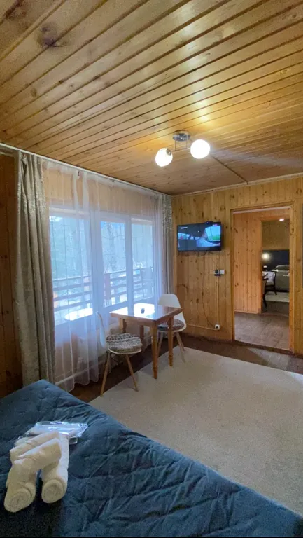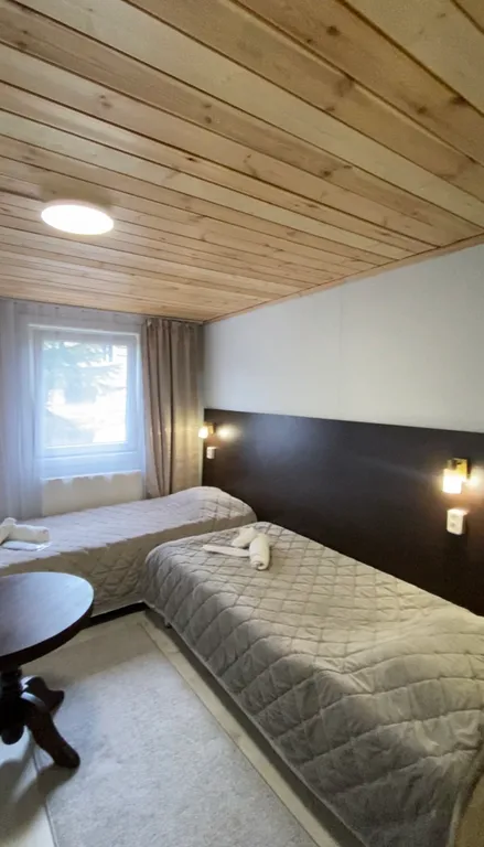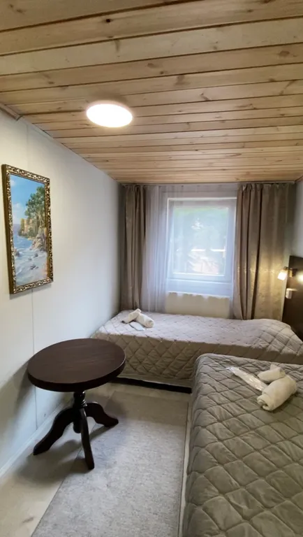 В одном номере 1 двух спальная и 2 односпальных кровати