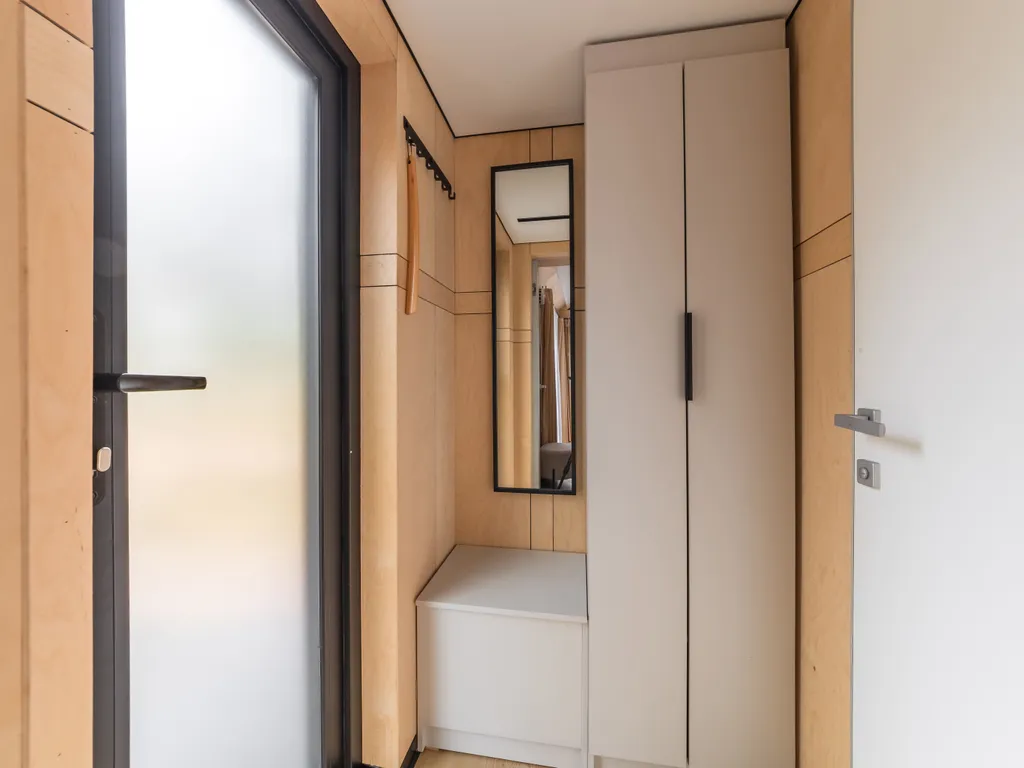 В данный домик есть возможность размещения с домашним питомцем (не более 50 см в холке). Стоимость размещения — 1000 руб./сутки. Также мы позаботились о людях с аллергией: у нас есть домики, где никто и никогда не жил с животными.