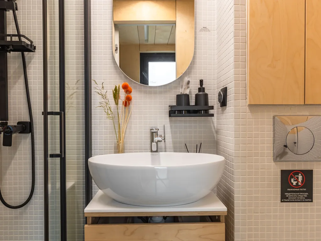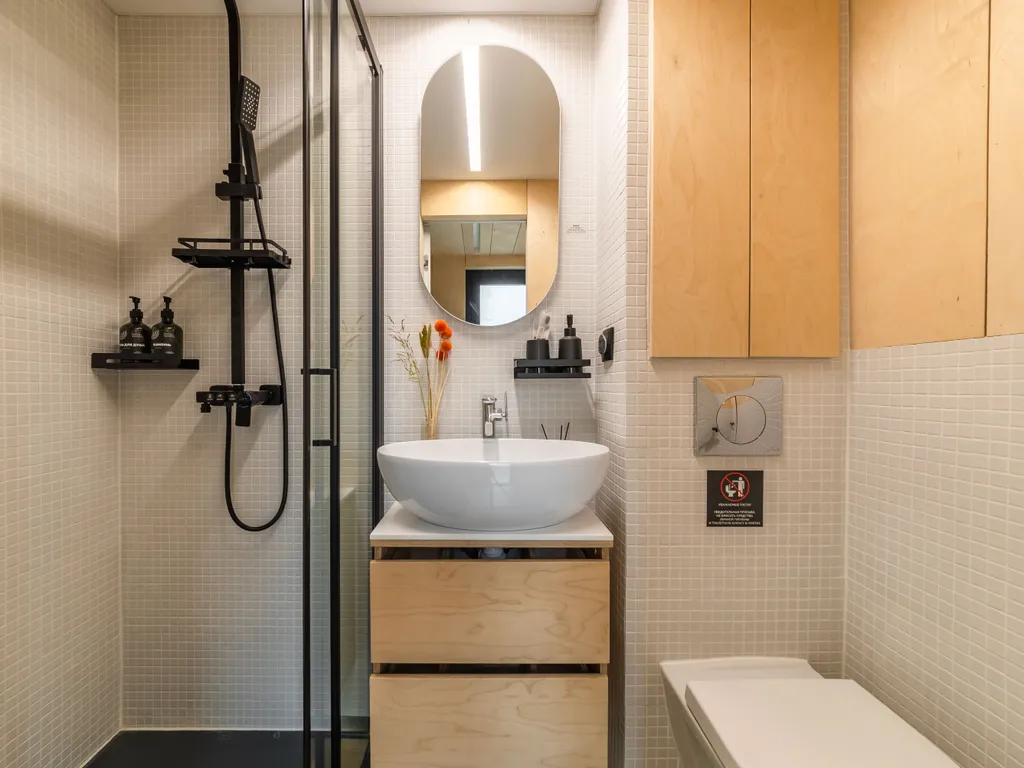 с\у, душевая кабина, полотенца и тапочки