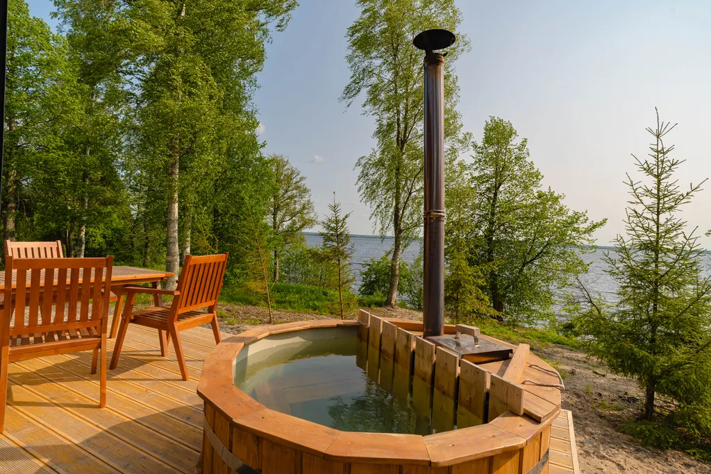 Огромная терраса с гриль-зоной и бочкой-фурако (не входит в стоимость), кухня со всем необходимым, просторная комната с двуспальной кроватью.