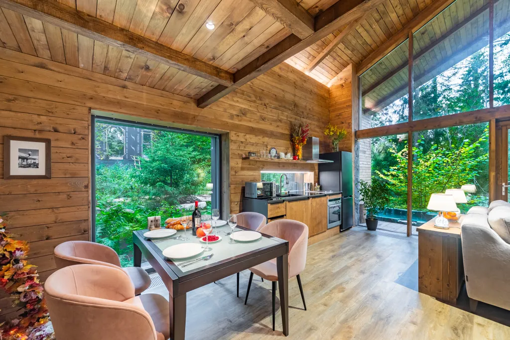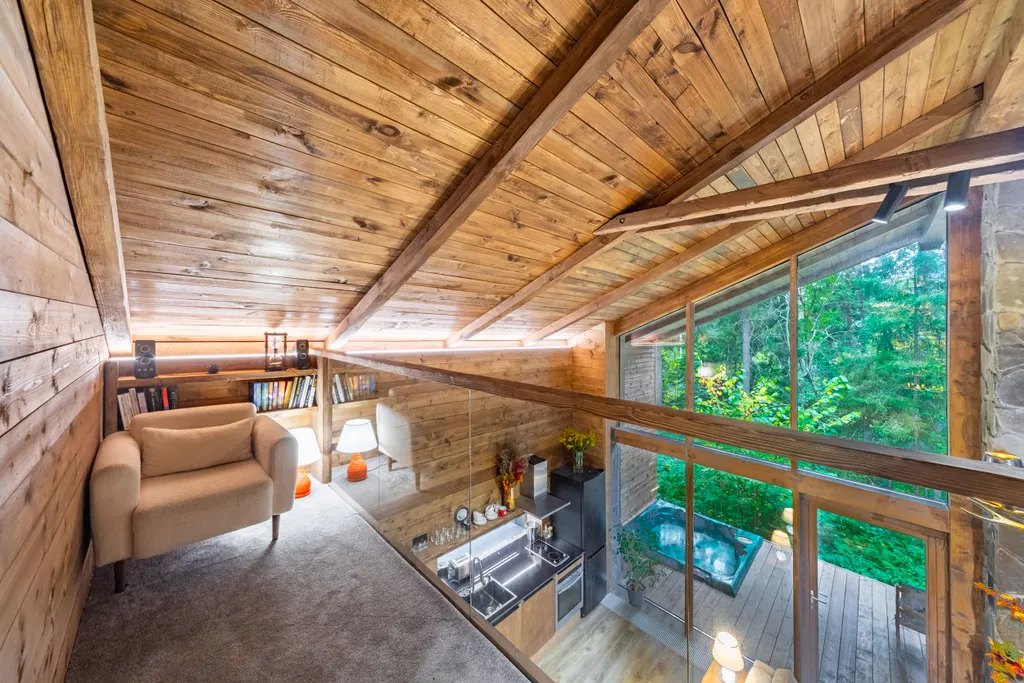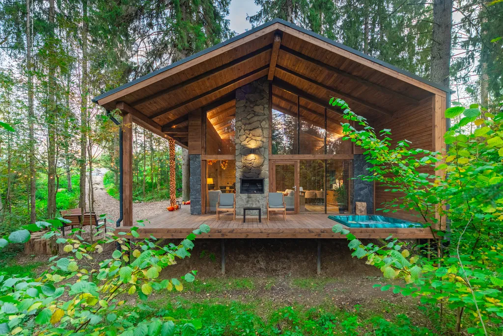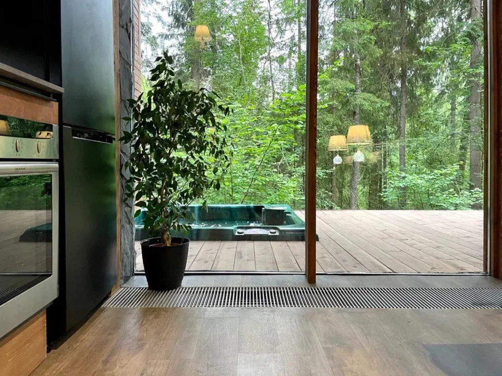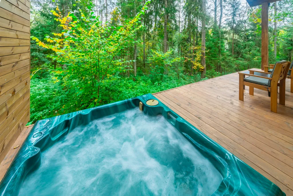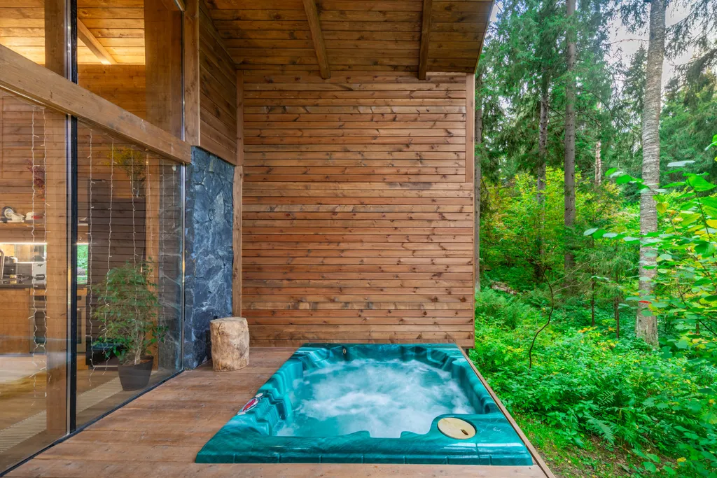- Spa-бассейн с гидромассажем и аэромассажем (джакузи) на террасе — расслабьтесь с потрясающим видом на лес.