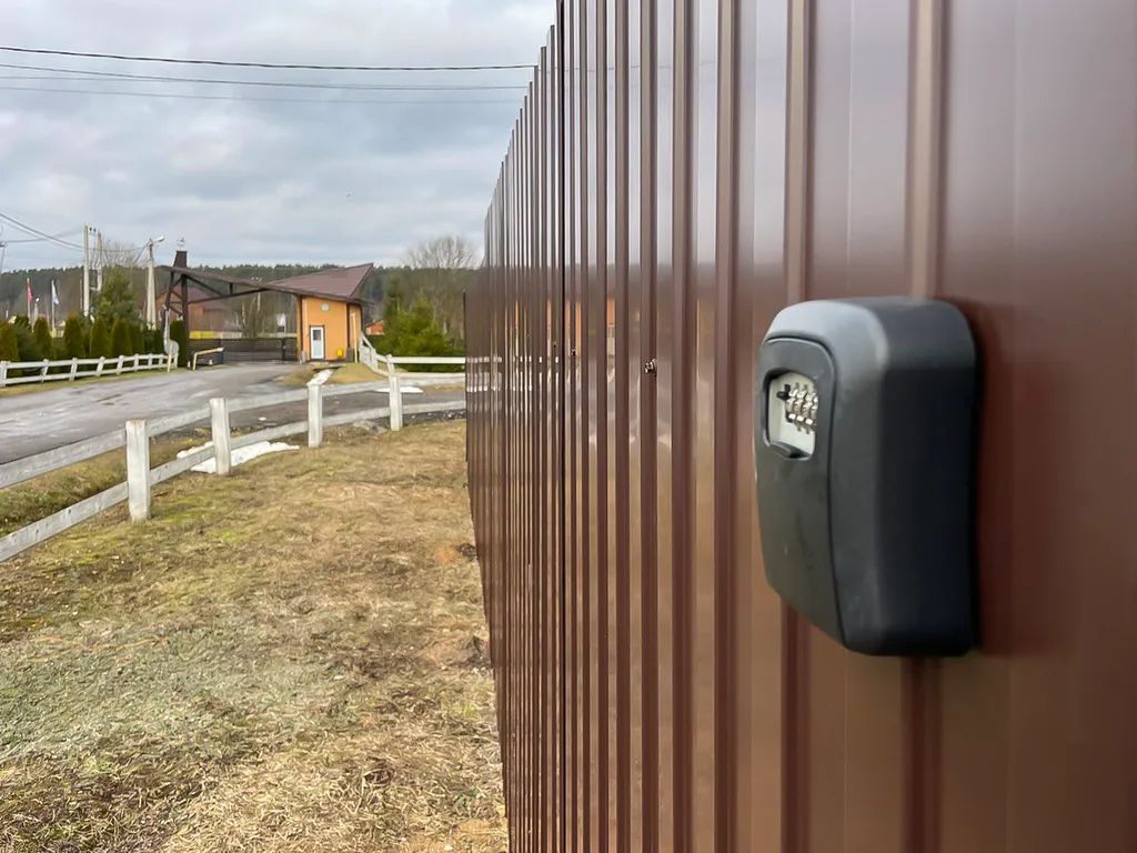 Территория участка огорожена забором, на территории — парковочное место, рассчитанное на 2 машино-места.