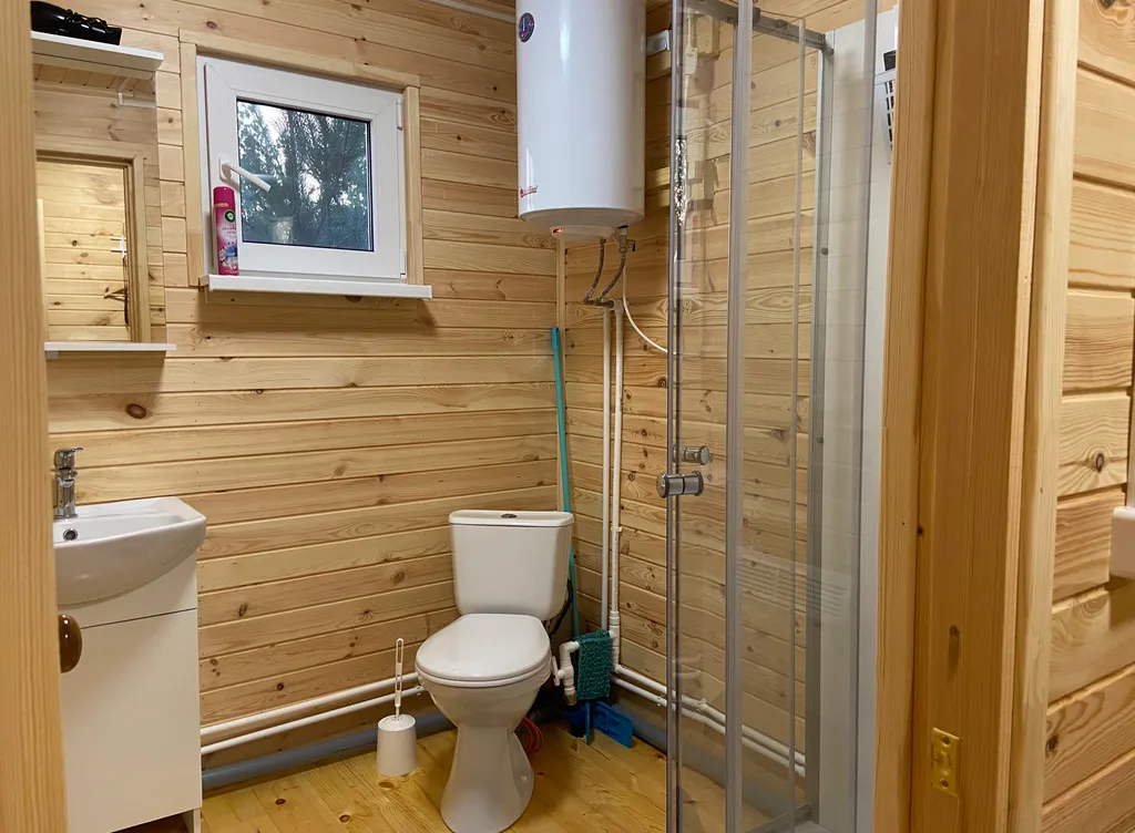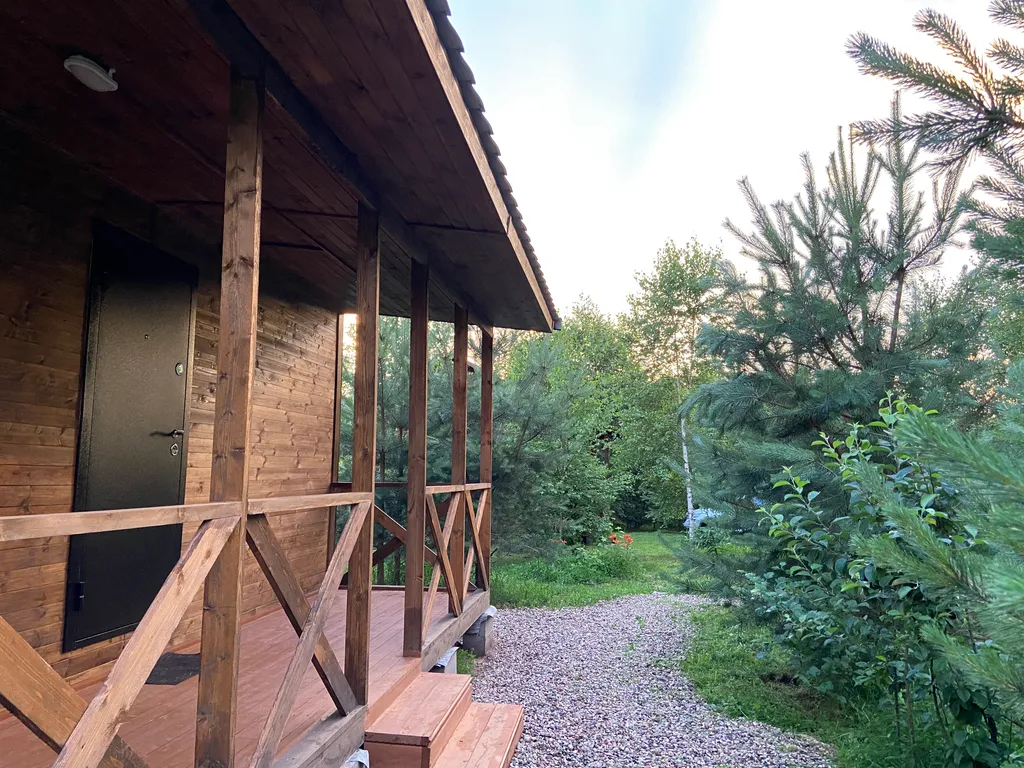 Большая удобная двуспальная кровать, кухня, обеденный стол, холодильник микроволновка и чайник. Ощутите себя наедине с природой остановившись у нас в окружении зелени, для вашего незабываемого отдыха мы подготовили мангал, удобные кресла и стол для пикника.
