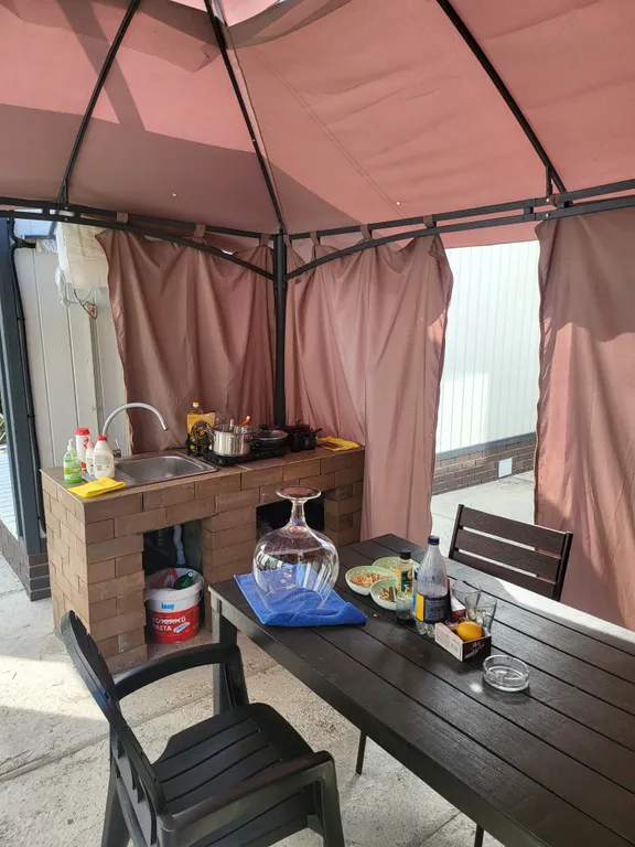 а) Купольная беседка с телевизором, кондиционером и колонкой для караоке.