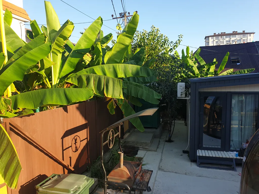 г) Качеля-шатер для отдыха в тени банановых деревьев.
