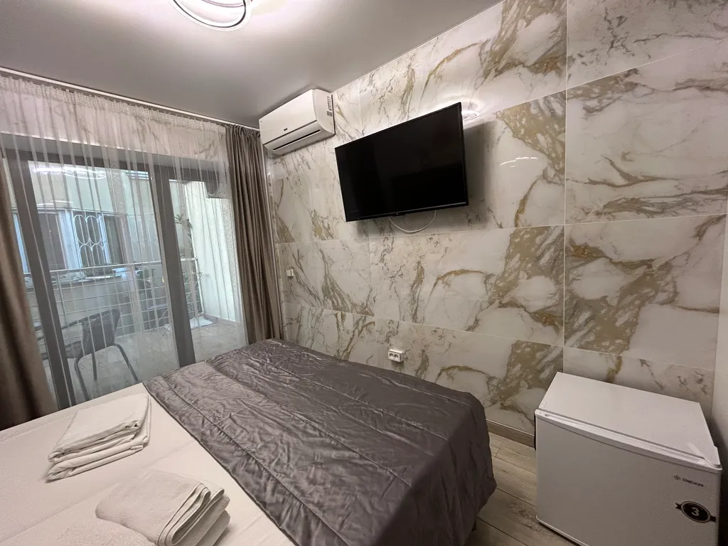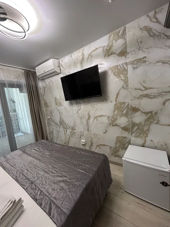 Современный апартаментный комплекс на территории отеля открылся в 2022 году. Ваш ждет стильное пространство с большой кроватью, светлой ванной комнатой и собственным балконом.