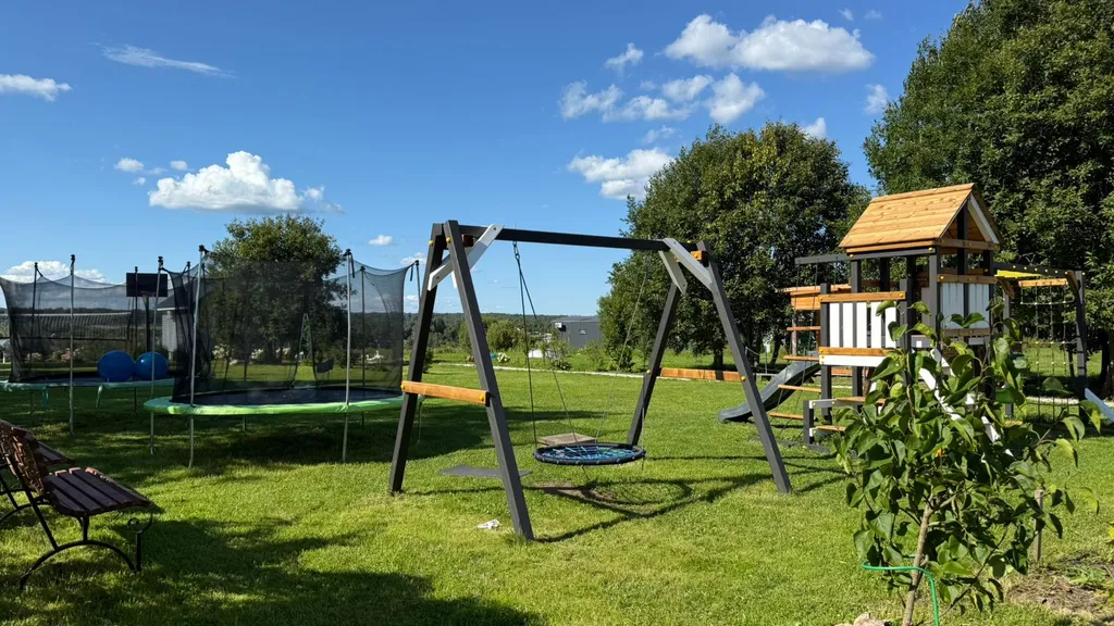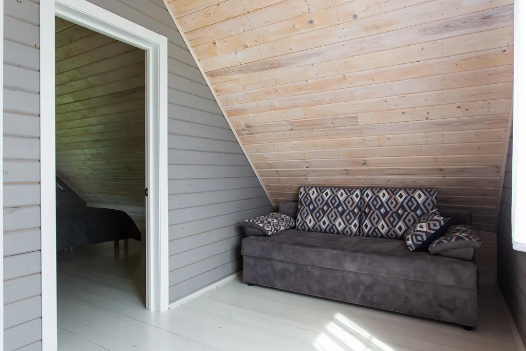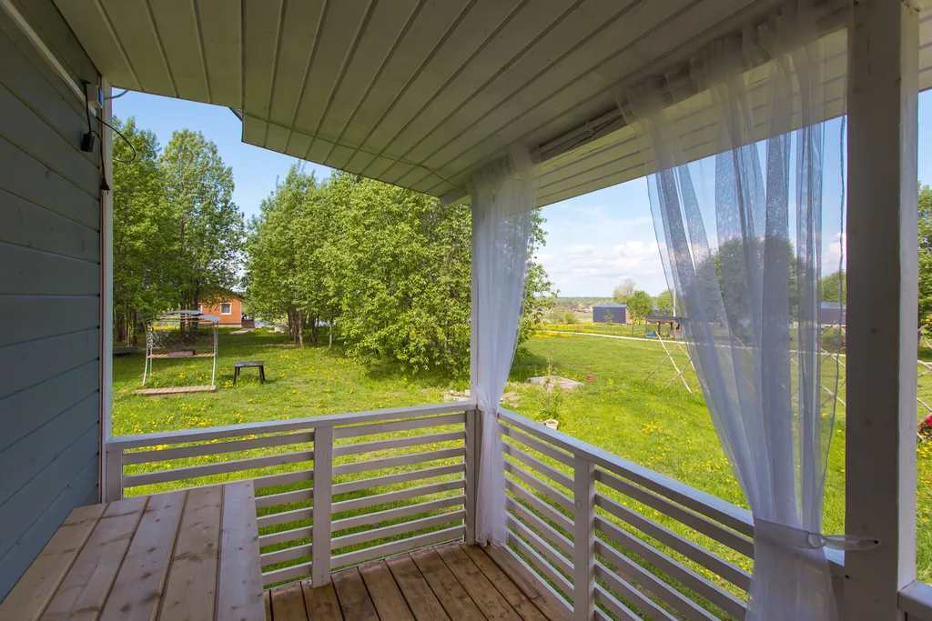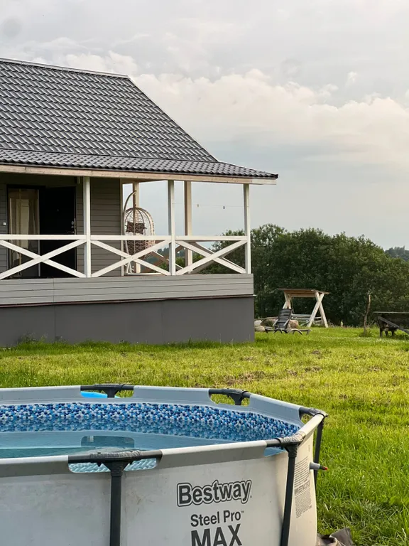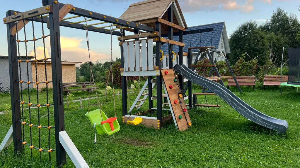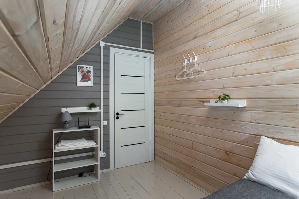На 2 этаже 2 спальни с двуспальными кроватями + гостиная с двуспальным диваном. Дом на 6 спальных мест. На базе 8 семейных домов.