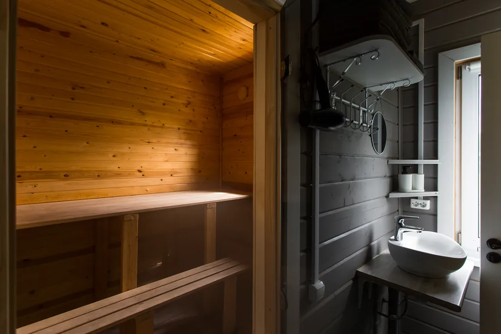 На 1 этаже просторная кухня с телевизором, пол с подогревом- комфорт+! Большой стол, удобный диван. Сауна (оплачивается по отельно 2500 руб, пользование 3 часа), санузел с душевой кабиной, бойлер с горячей водой.