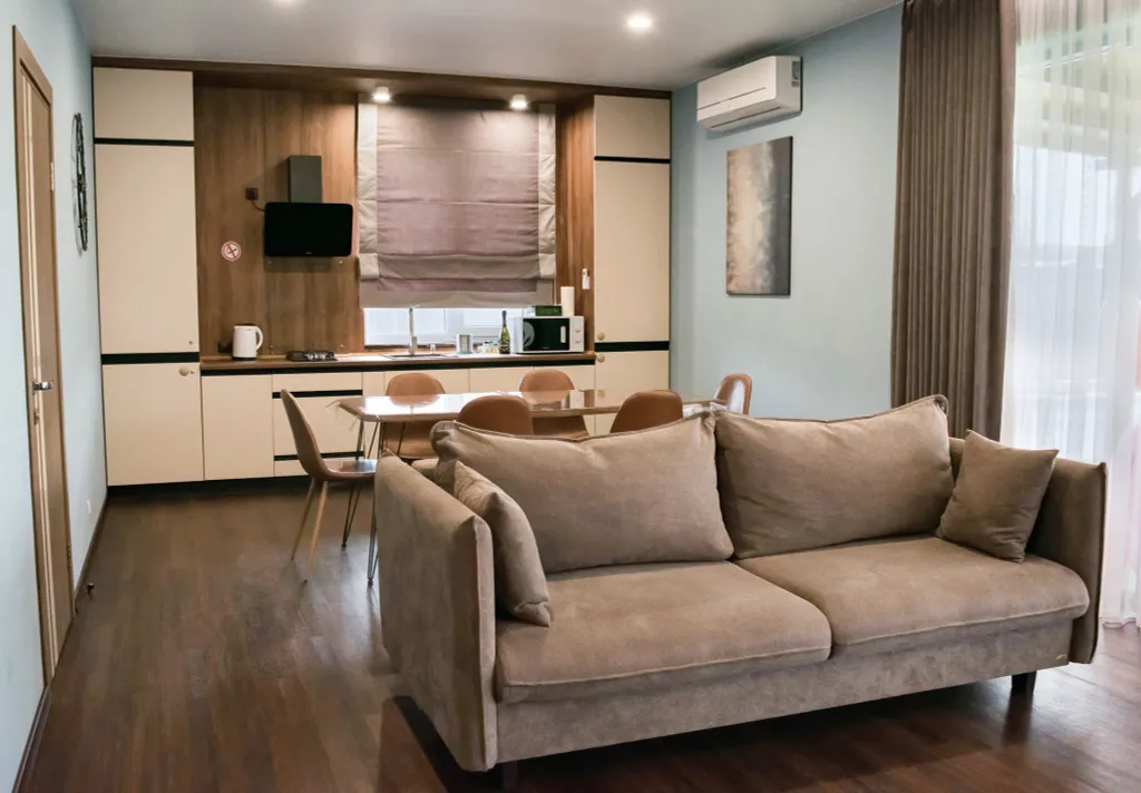Кухню-гостиную.