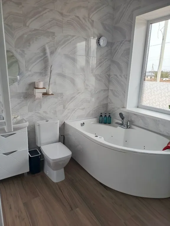 В доме два раздельных сан. узла в одном из которых есть душевая и Аэромассажная ванна с подсветкой.