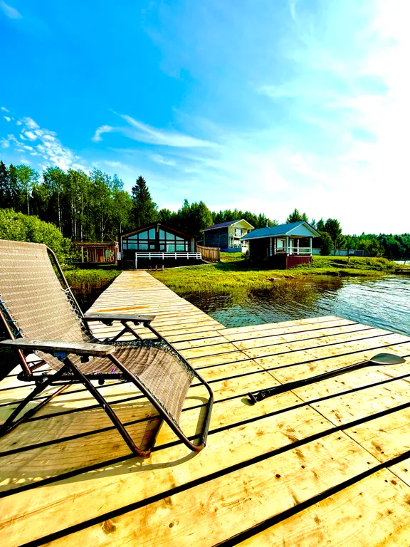 На территории имеется баня, полноценная большая баня с панорамным остеклением с тёплым душем тёплыми полами. А также есть терраса. С уличной мебелью. В бане очень комфортно. В комнате отдыха можно отдохнуть баня находится в 5-м от реки. Есть пирс. Можно из бани нырять прямо в реку.