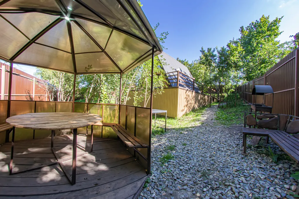 - Уютная беседка с крышей на 6 посадочных мест.