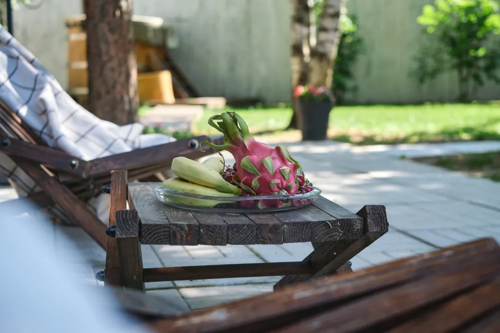 - чан с подогревом от дров (6000 р. топка), патио с мангальной зоной, лежаки, своя парковка.
