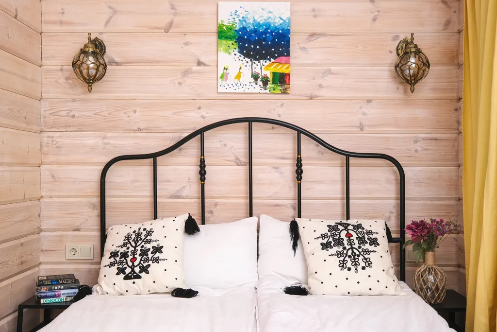 - просторный зал с панорамными окнами (вторым светом), столовая зона и кухня, кресло-гамак с видом на аллею из сосен, спальня с двуспальной кроватью и детской кроваткой на 1 этаже, двуспальная кровать на 2 этаже, 2 ванные комнаты, подогреваемые полы на 1 этаже, быстрый Wi-Fi, кондиционер.