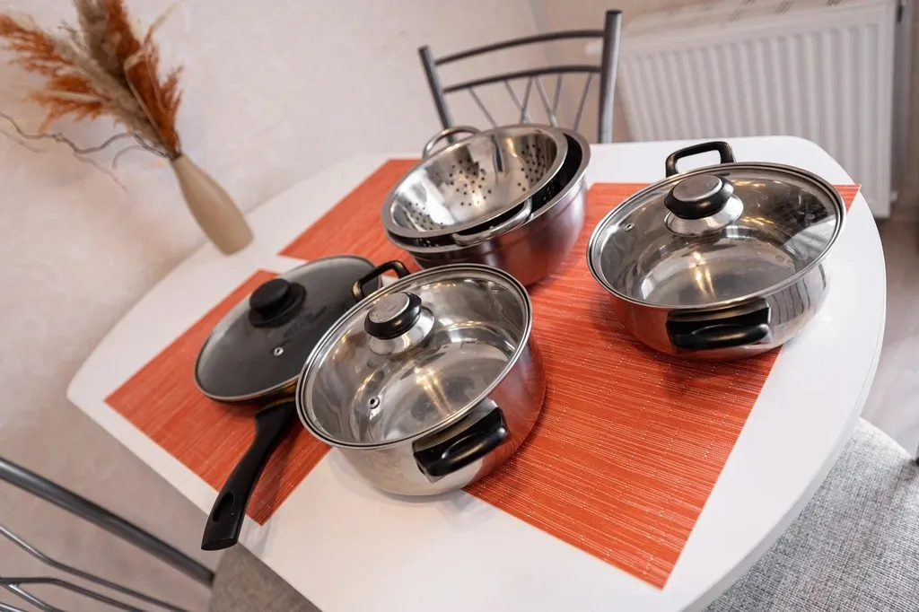 -Наборы посуды, столовых приборов, сковородка, кастрюли;