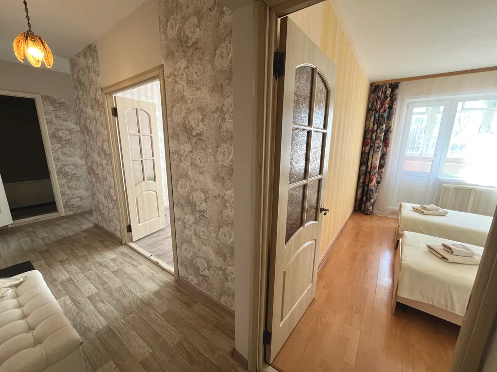 Двухкомнатная квартира в районе универсам-1. 3/9 этаж. В шаговой доступности трц оранж молл, тц миллениум, тц галерея несколько больших супермаркетов, кафе. Остановки: "газета звезда", "мира". Удобный выезд из города.
