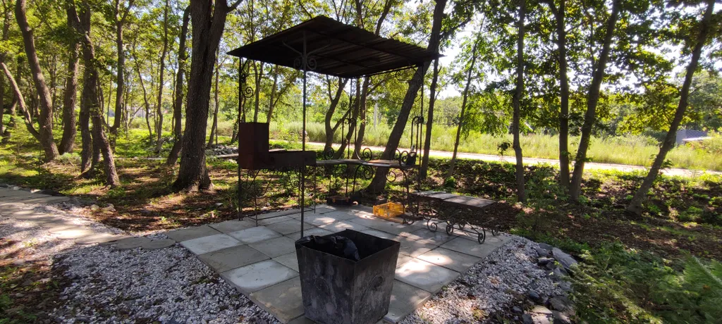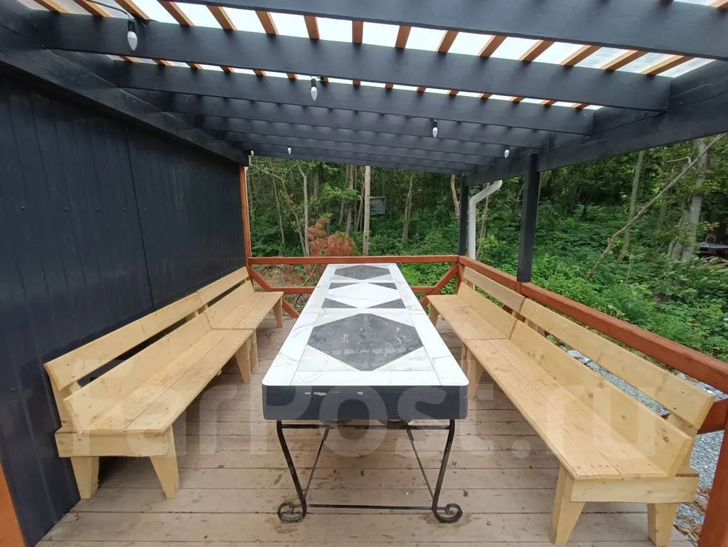 Просторная гостиная с танцполом и кухонной зоной! Также есть вся необходимая посуда для приготовления блюд и приема пищи, столовые приборы. Второй этаж в оригинальном стиле! Вместительная веранда-беседка с отдельной мойкой, со столом на 12 посадочных мест, качеля! Мангальная зона (казаны, тандыр, мангал)! Спальные места 10 шт. Дом прекрасно подойдёт для празднования дня рождения, корпоратива, офиц, приёма, семинаров и др.