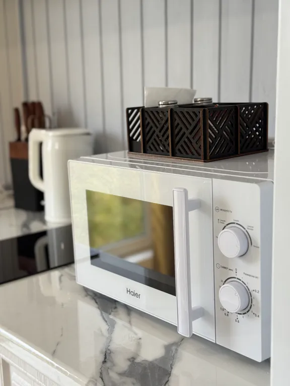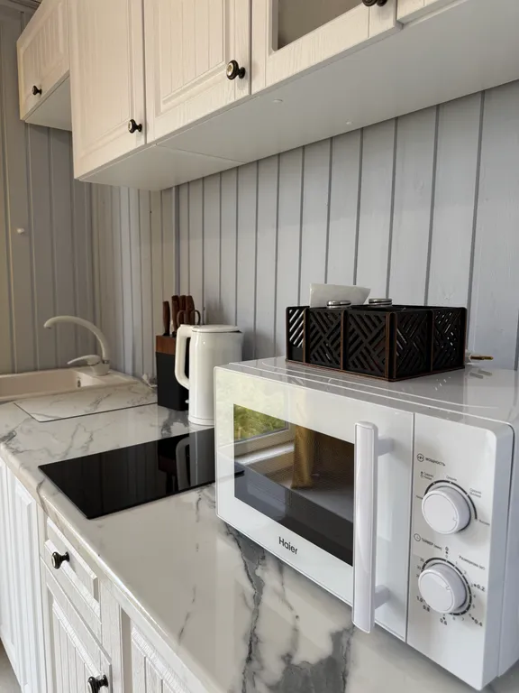 Бытовая техника: колонка алиса, wi-fi, варочная поверхность, посудомоечная машина, микроволновка, чайник, стиральная машина и фен — для тех, кто путешествует надолго.