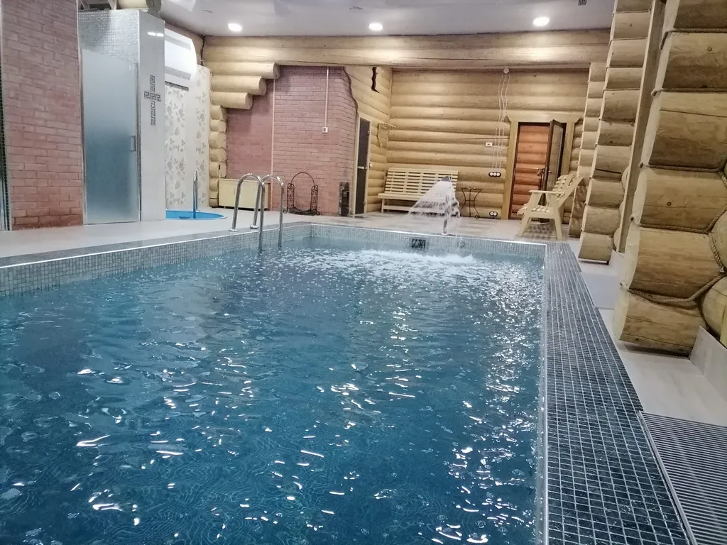 Для полного оздоровительного комплекса имеется хороший отапливаемый бассейн с гидромассажем и купель с холодной водой, а также сауна на дровах с соляными столбами.