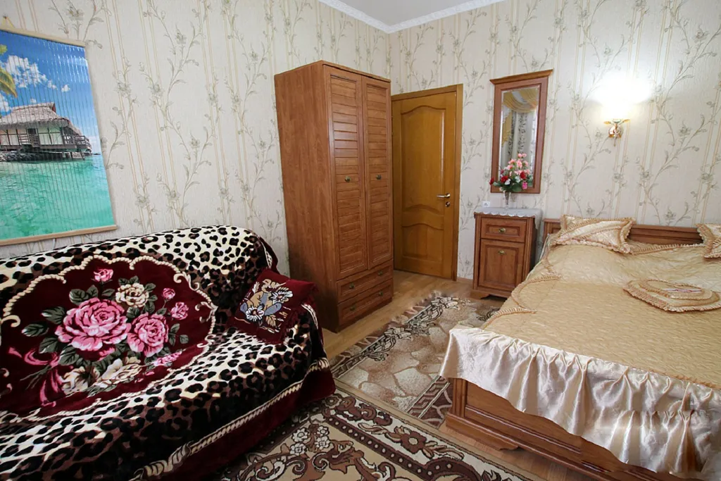 Двухэтажный дом расположен на очень тихой улице центра города. Комнаты видовые. В комнатах имеется все нужное для удобства гостей.