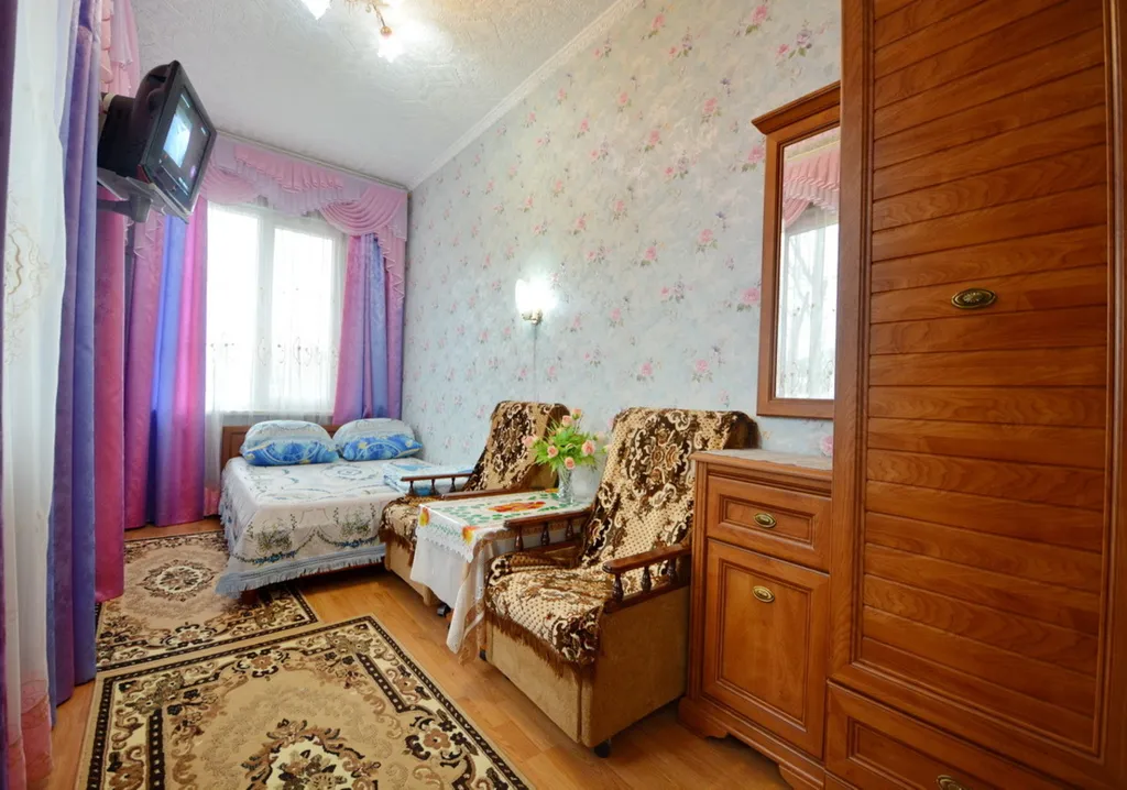 Атмосфера домашняя, располагающая к расслаблению и спокойствию. Оформление комнат современное, но уютное: красивые шторы, добротная мягкая мебель, аккуратные ванные и душевые кабинки, вся необходимая техника.