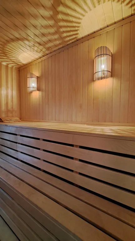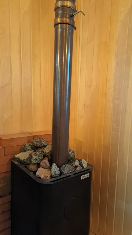 Сауна (на дровах) с отдельным выходом на улицу, в душевой тёплый пол, влажный или сухой пар, без веников. Оплата 300 рублей за одного гостя/ час.