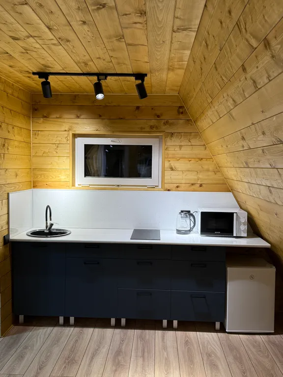 - Кухня со всей необходимой посудой, приборы, микроволновая печь, электрочайник, холодильник, варочная панель, чай, кофе, соль, сахар, раст. масло