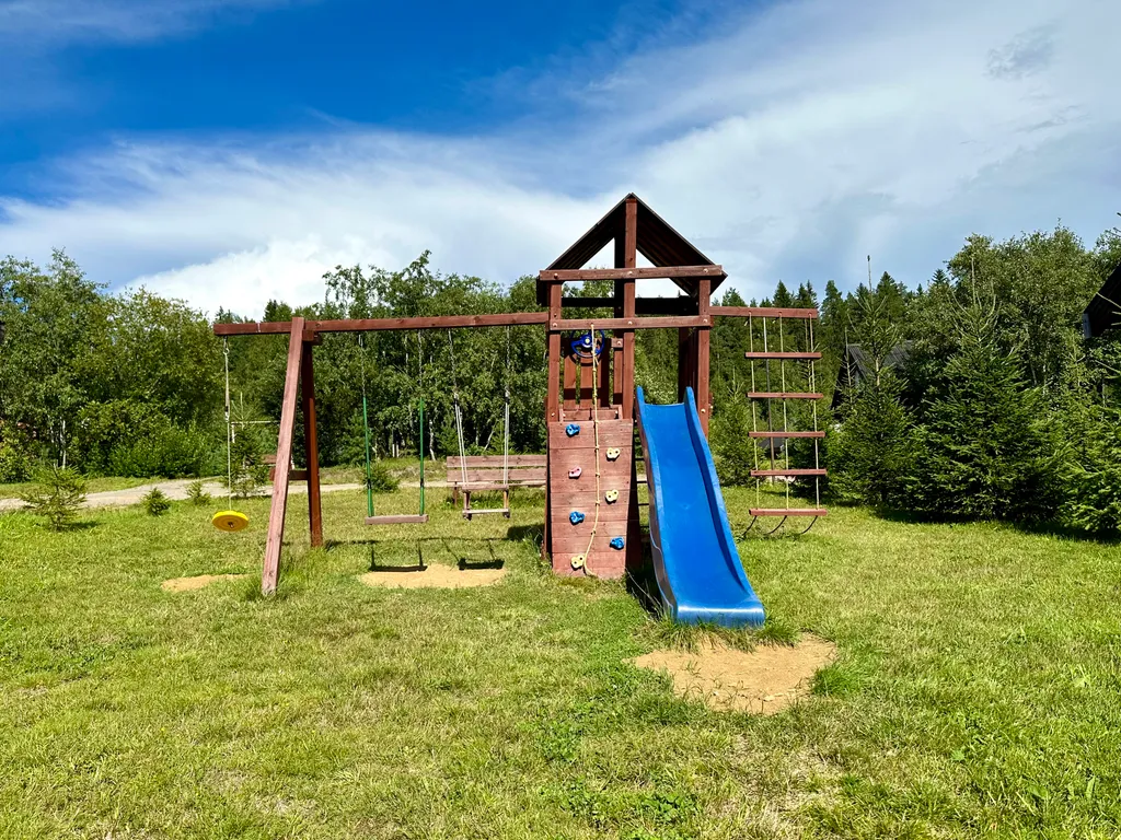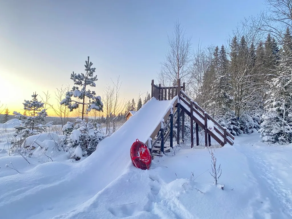 На территории комплекса 2 детских площадки, горка для катания на ватрушках, в теплое время года батут.