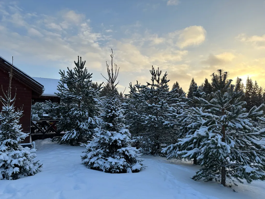 У нас красивая, ухоженная территория. Вокруг лес, есть прогулочные тропы. Коттедж окружен соснами и елями.