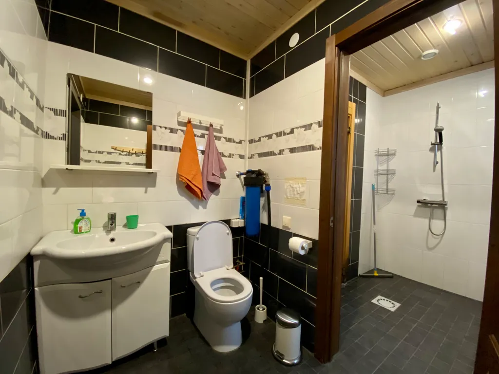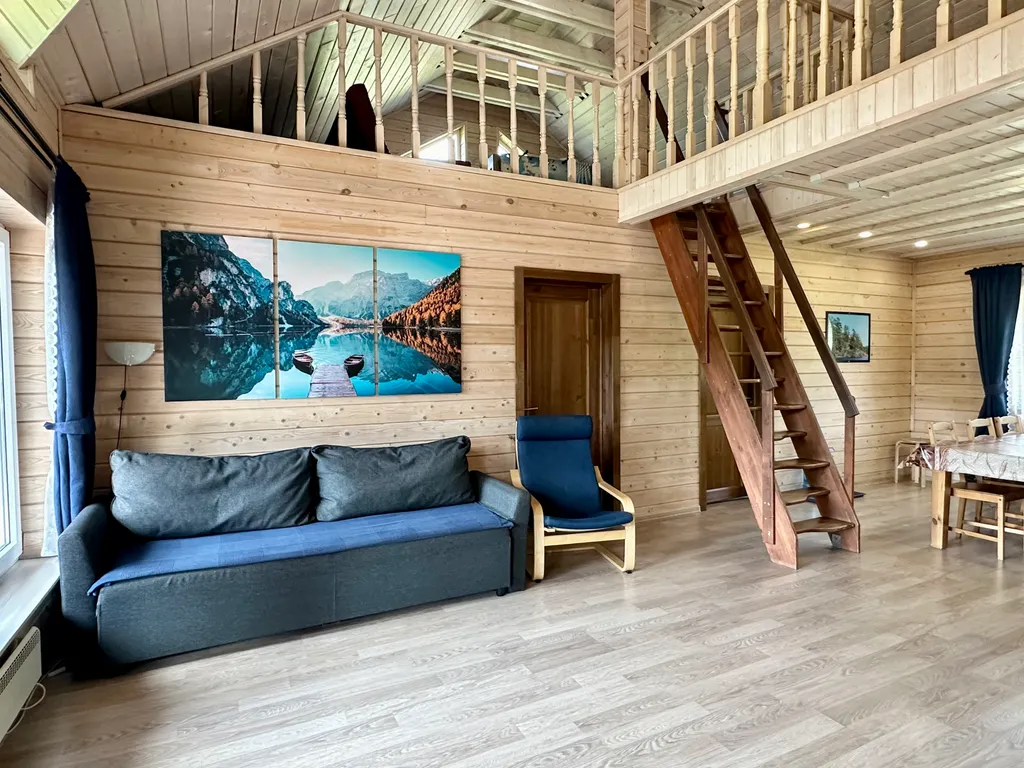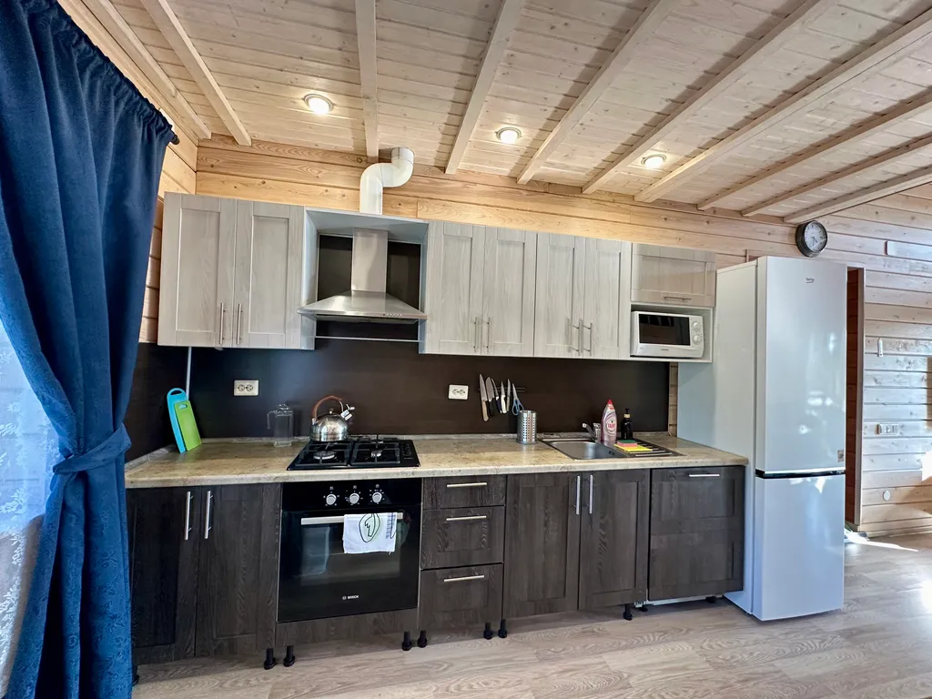Коттедж тёплый, во всех комнатах радиаторы, в санузлах и зоне гостиной тёплые полы.