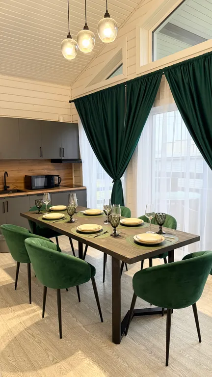 кухня-гостиная с высоким потолком и вторым светом;