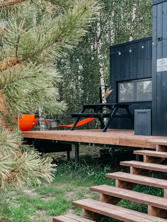 Дом рассчитан до 2-х человек, где есть небольшая кухня со столом, стульями, мобильной варочной панелью, холодильником, раковиной и всем, что может понабиться на время проживания: чайником, кофеваркой и набором посуды. Соль, сахар, чай-кофе, растительное масло – всегда в наличии).