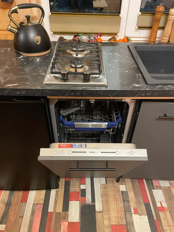 холодильник, посудомойка; газовая плита