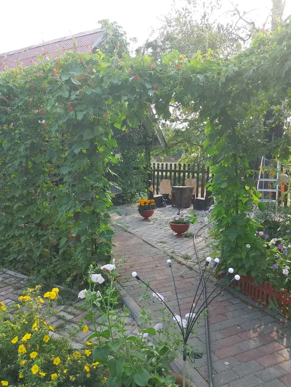 Имеется крытая терраса.-зона отдыха (диван и 2 кресла, столик), где можно насладится природой -вид на воду.