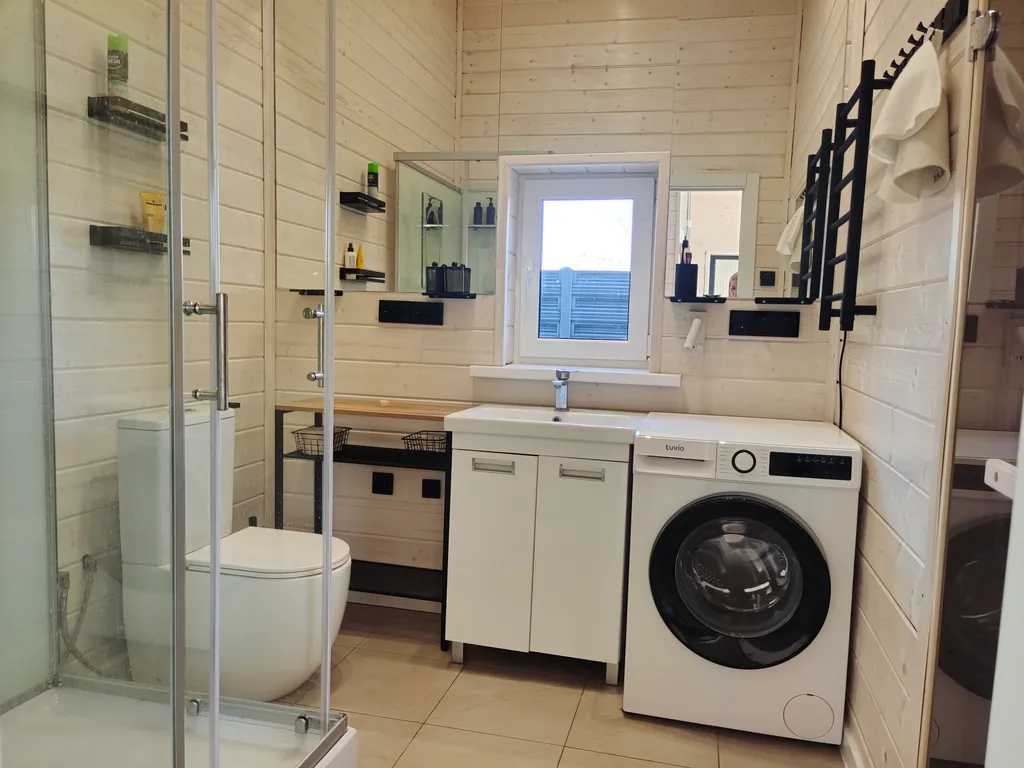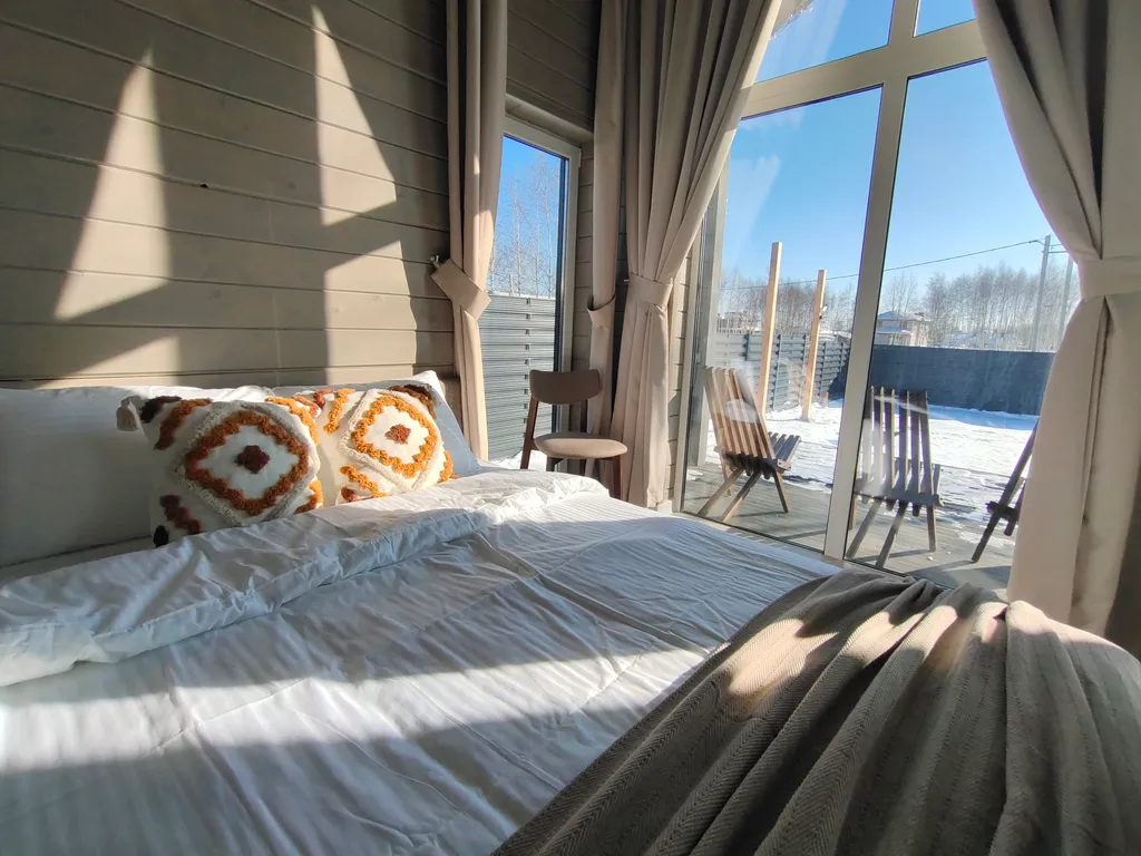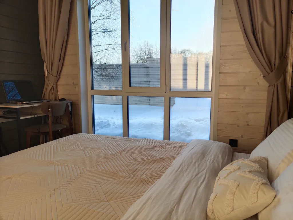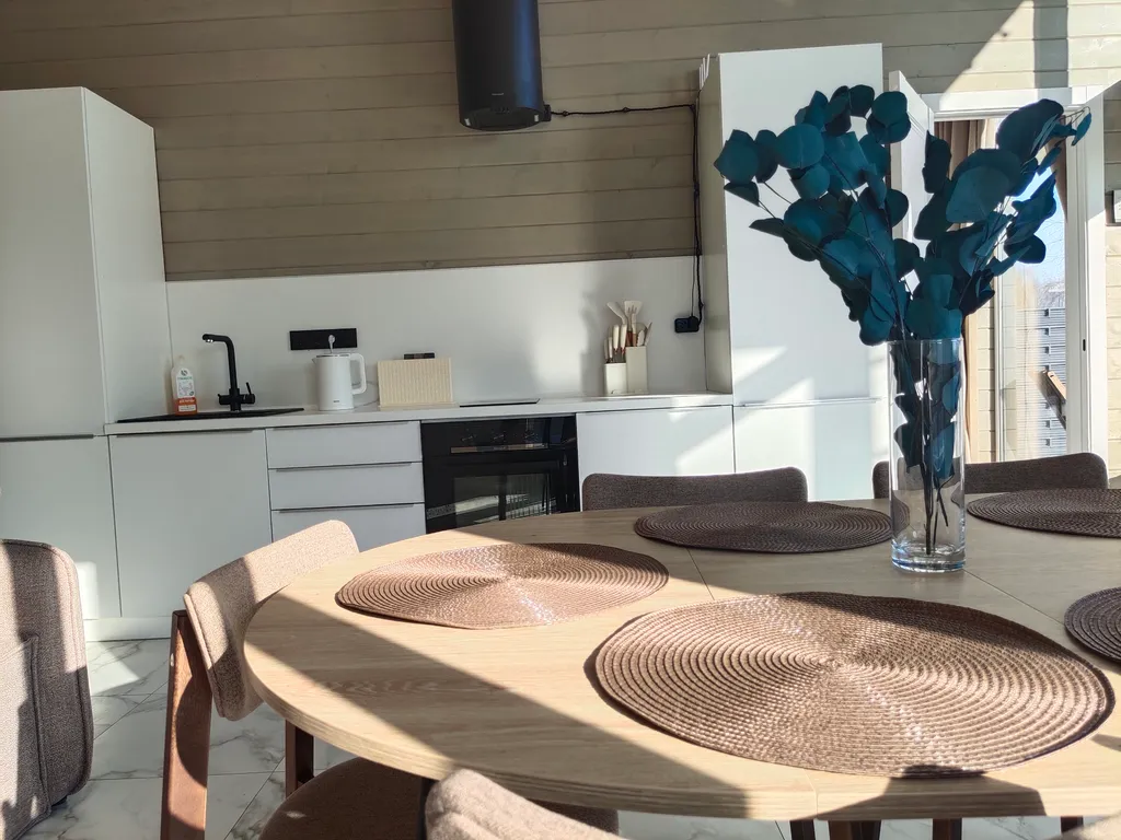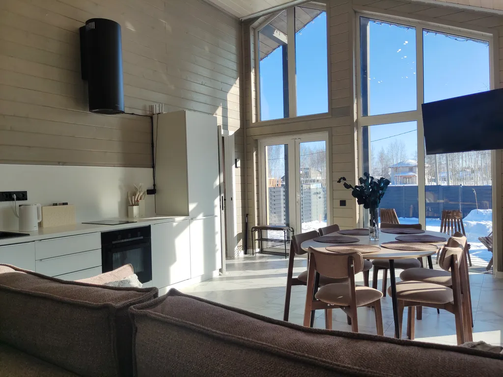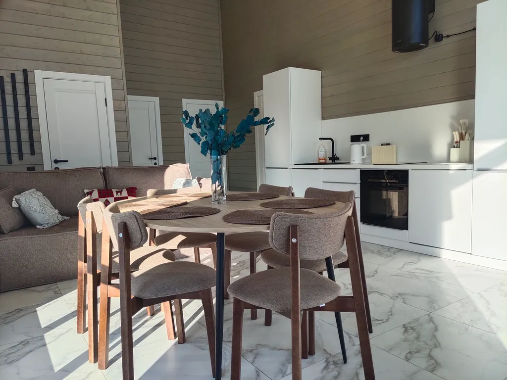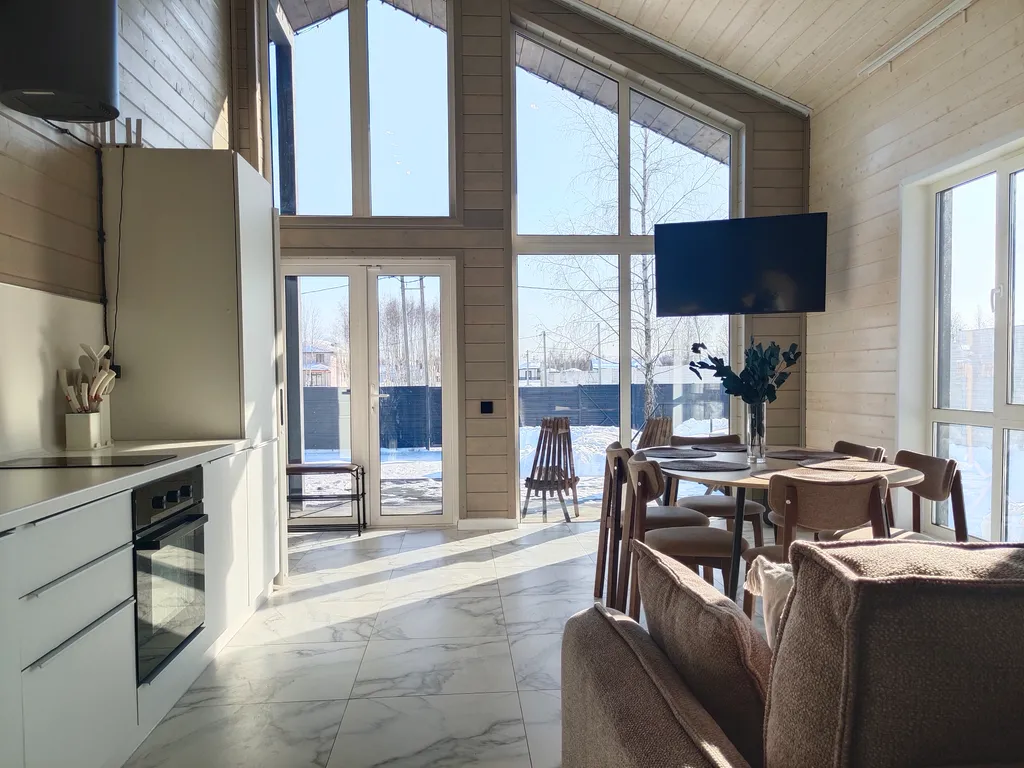 Coвpeмeнный и комфортный дом 90 кв.м с просторной террасой, имеет 3 парковочных места и вмещает до 8 гостей. Подходит для круглогодичного проживания. По всему дому установлены теплые водяные полы. Идeaльное меcтo для отдыха и восстановления сил.