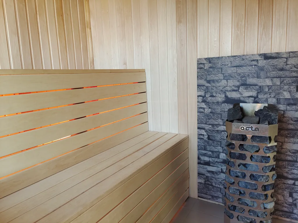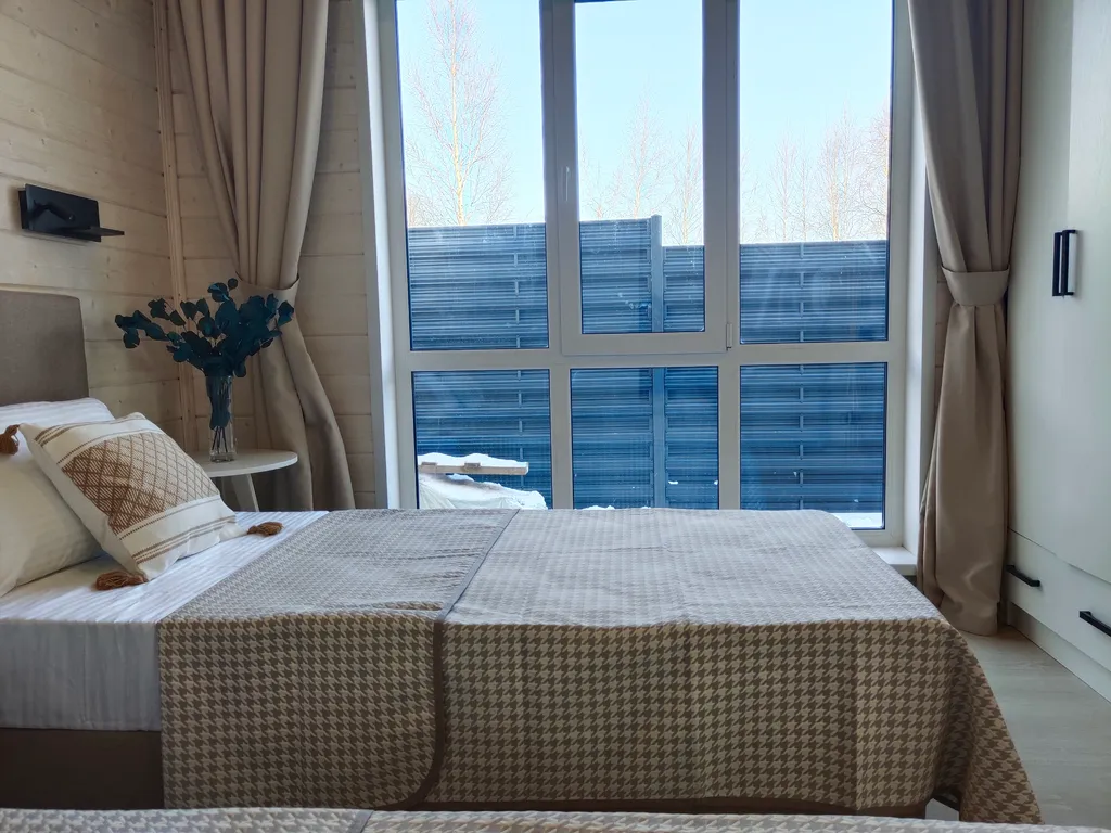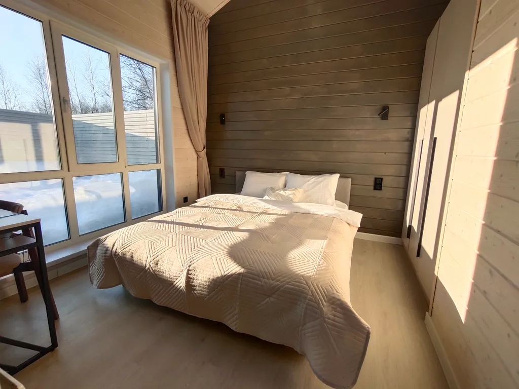 Сауна с панорамным окном — в стоимость бронирования включены 4 часа сауны (1 час подготовка и разогрев сауны до оптимальной температуры и 3 часа парения). При необходимости ежедневного использования сауны (по 5 часов в день) доплата 2000 руб. в день. Предоставляются банные хлопковые полотенца 90 на 140 см.
