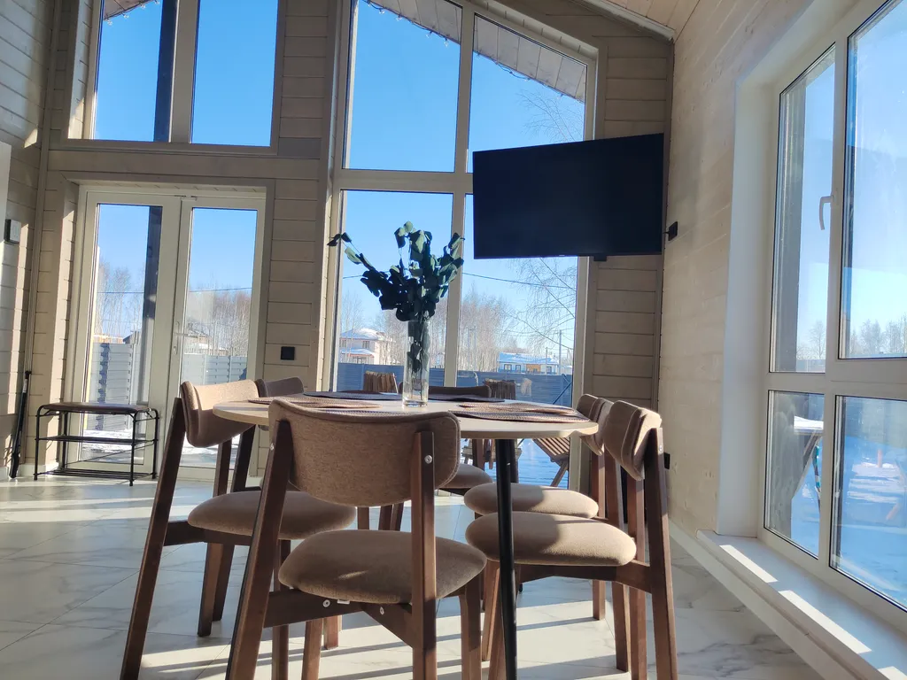 Из панорамных окон открывается вид на склон Сорочаны и березовый лес. Это идеальное место для отдыха, дня рождения, семейных выходных, девичников и встреч с друзьями.