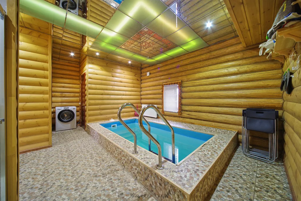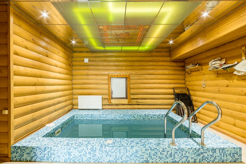 - Баня с теплым бассейном идеально подходит для семейного отдыха или дружеских встреч.