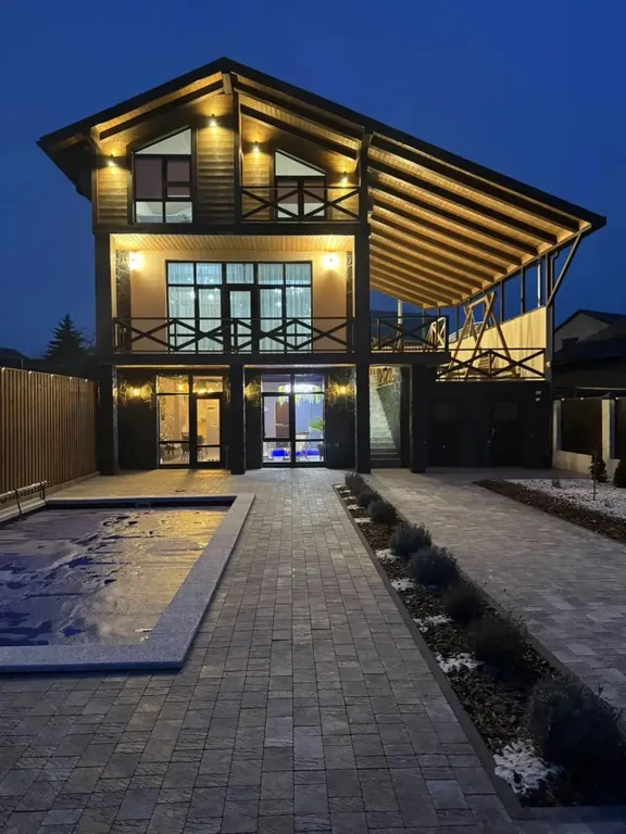В вашем пользовании новый коттедж в стиле шале с банным комплексом внутри дома, изолированный двором с бассейном, мангальной зоной и большой беседкой