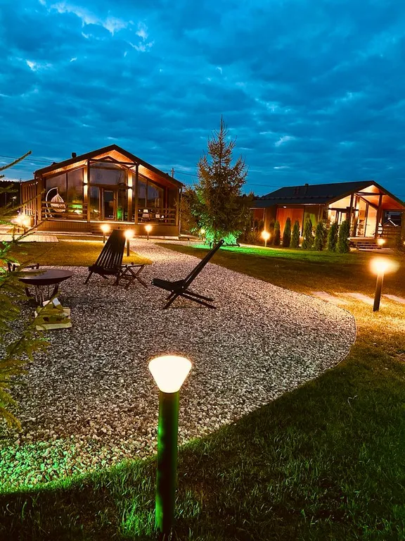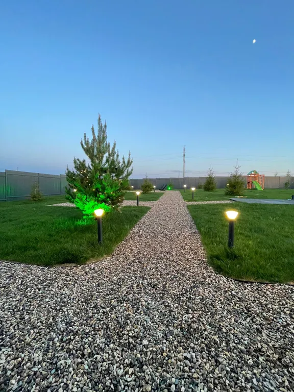 - Красивая территория с подсветкой. На территории — ухоженные хвойные деревья (ели и туи). Территория вокруг дома полностью освещается.